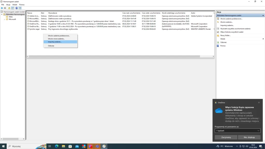 3. Otwórz Bibliotekę Harmonogramu zadań i kliknij w puste miejsce na liście zadań prawym przyciskiem myszki