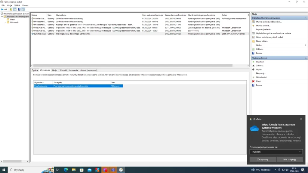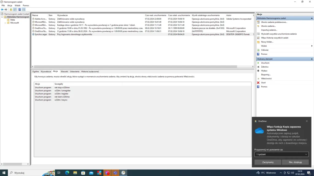5. Po zaimportowaniu zadania powinieneś mieć skonfigurowane zadanie jak na poniższych screenach: